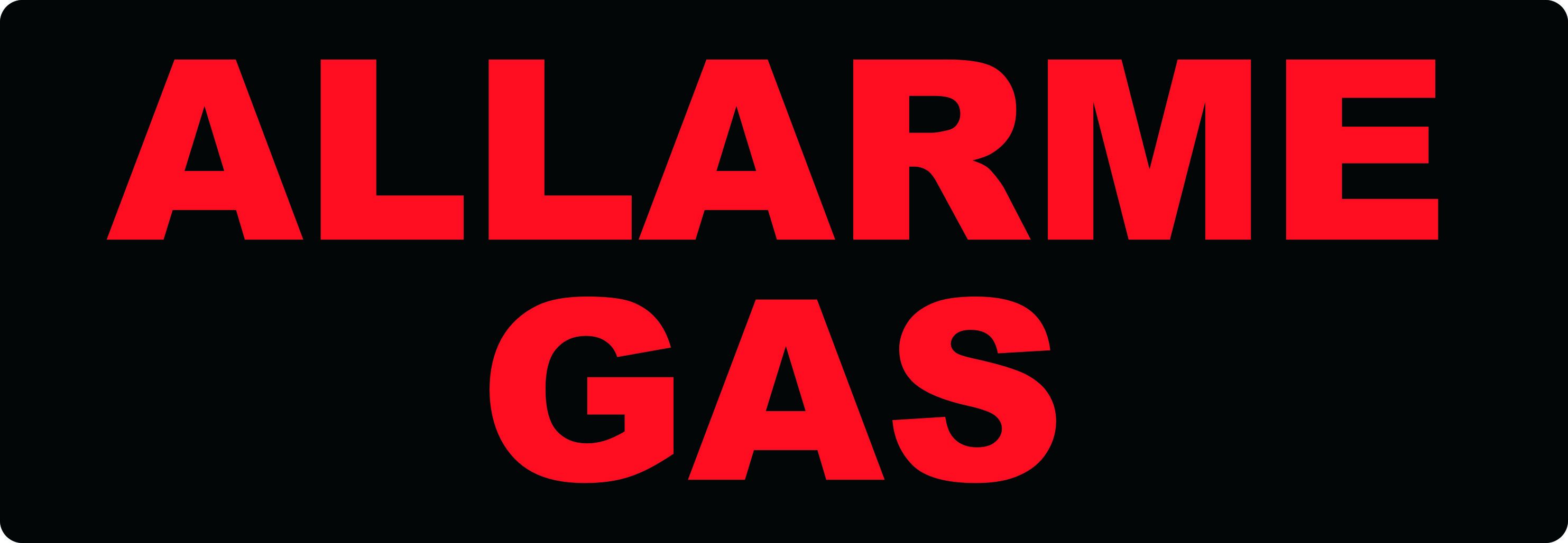 Targa per cassonetto luminoso SOL50 e SOL50S con scritto "Allarme gas".