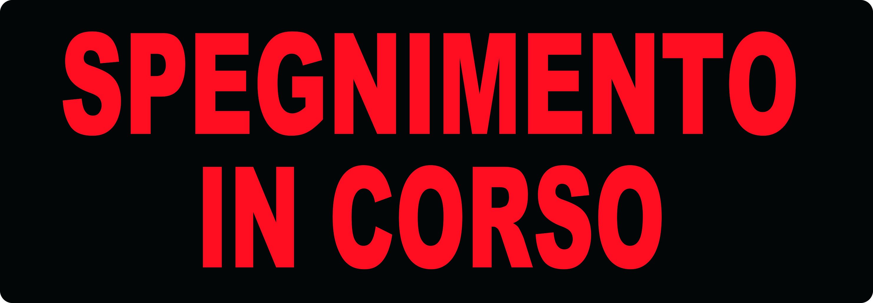 Targa per cassonetto luminoso SOL50 e SOL50S con scritto "Spegnimento in corso".
