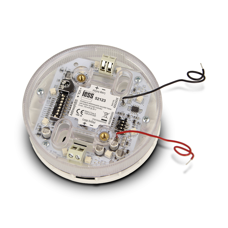Segnalatore acustico indirizzabile con indicazione luminosa su base sensore con isolatore a bordo compatibilie con schede loop IE mod. 52101, KELT9L2 e KELT9L4.