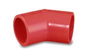 Gomito 45° in ABS rosso per tubi Ø25 mm.