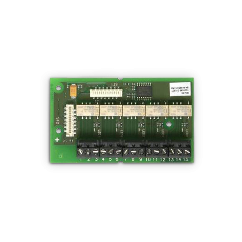 Modulo a 5 relè compatibile con ASD531 e ASD532, è possibile installare max 2 RIM36 nella centrale ASD532 e 1 RIM36 nella centrale ASD531. Carico max contatto relè 50 Vcc / 1 A / 30 W, dimensioni L 58 x H 95 x P 17mm, peso 85 g, assorbimento 15 mA, alimentazione (da AMB 35) 5 Vcc.